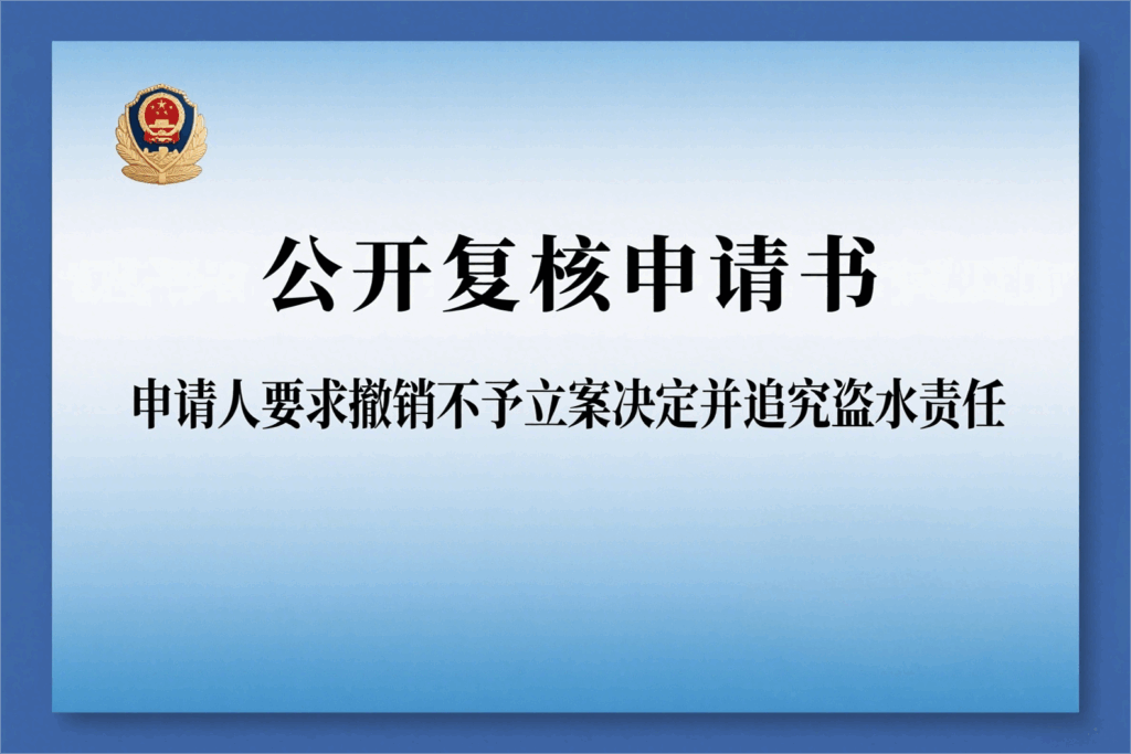 【摘要】本复核申请书由控告人赵如兴提出,主张静安分局大宁路派出所对其“盗窃自来水”控告作出的不予立案决定及静安分局维持决定在程序与实体上均存在严重错误:一是程序违法,包括篡改控告时间、超期审查且复议未纠错;二是实体认定错误,忽视水务部门权威文件、物业说明及现场照片所构成的完整证据链,足证被举报人通过“私接管道、绕表取水”实施盗窃;三是涉案数额经水务部门核算达3.358万元,显著超过盗窃罪立案标准。申请人据此请求撤销不立案与复议决定,并责令对被举报人及其公司立案侦查。