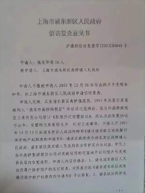 上海浦东新区56名失地农民的信访复核申请书 20 5 月, 2023 作者 gmjd 申请人:施克华等56名(名单附后) 联系地址:上海市浦东新区夏碧路 邮编:200137 手机:13585572 … 阅读更多