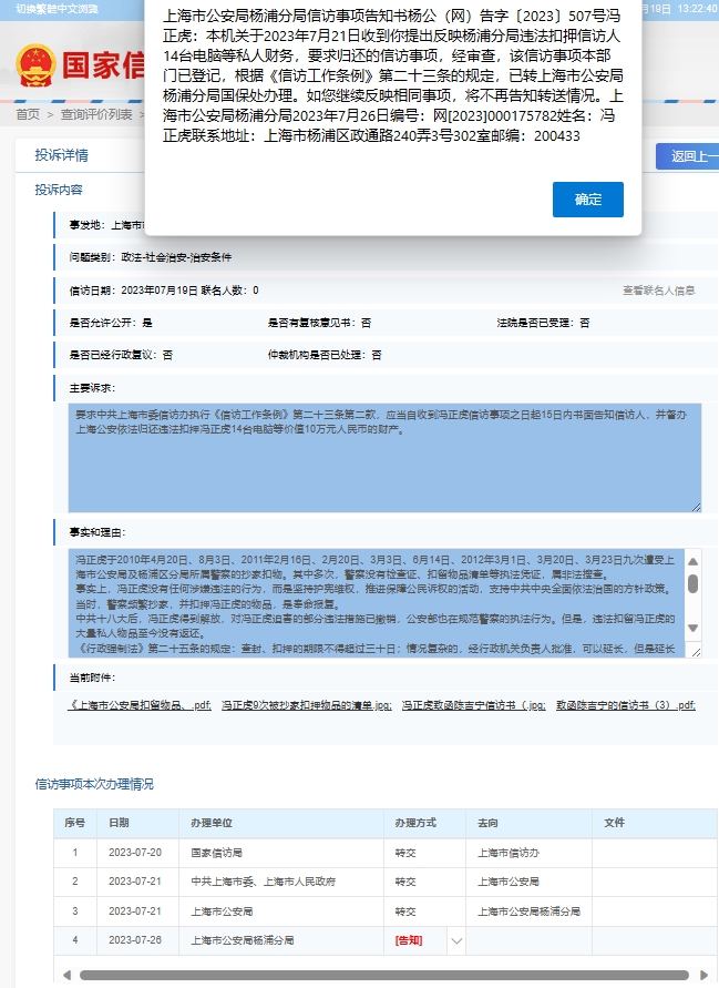 冯正虎致上海公安杨浦分局的信访书(2) 17 6 月, 202417 6 月, 2024 作者 gmjd 【前言】 中共中央政治局会议审议批准,并由中共中央和国务院共同发布的《信访工作条例》比过去国务院单独颁布的《信 … 阅读更多