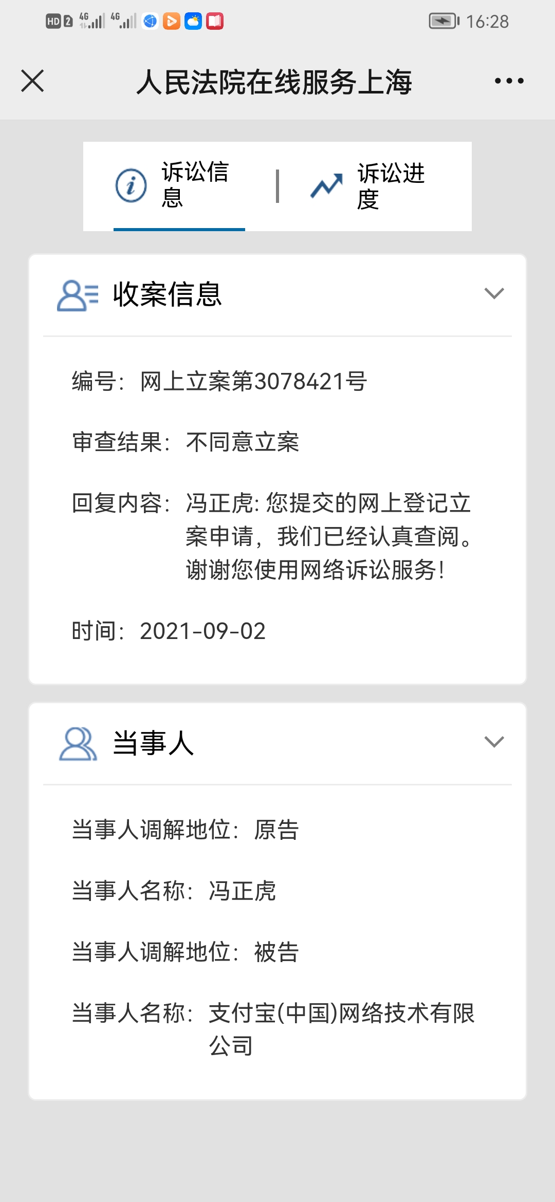 杭州市西湖区法院关于冯正虎诉支付宝一案管辖权的回复